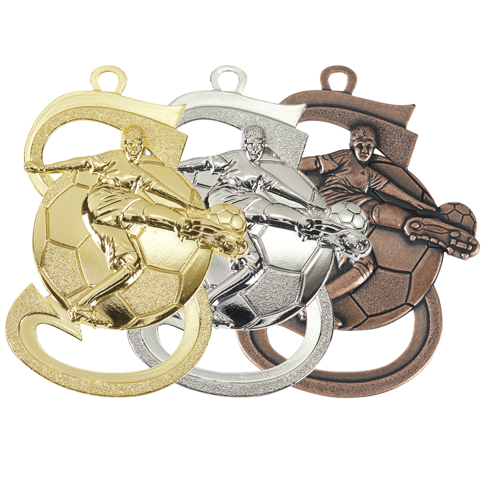 Medalia E218 – 59x40 mm este ideala pentru competitii si turnee de fotbal.